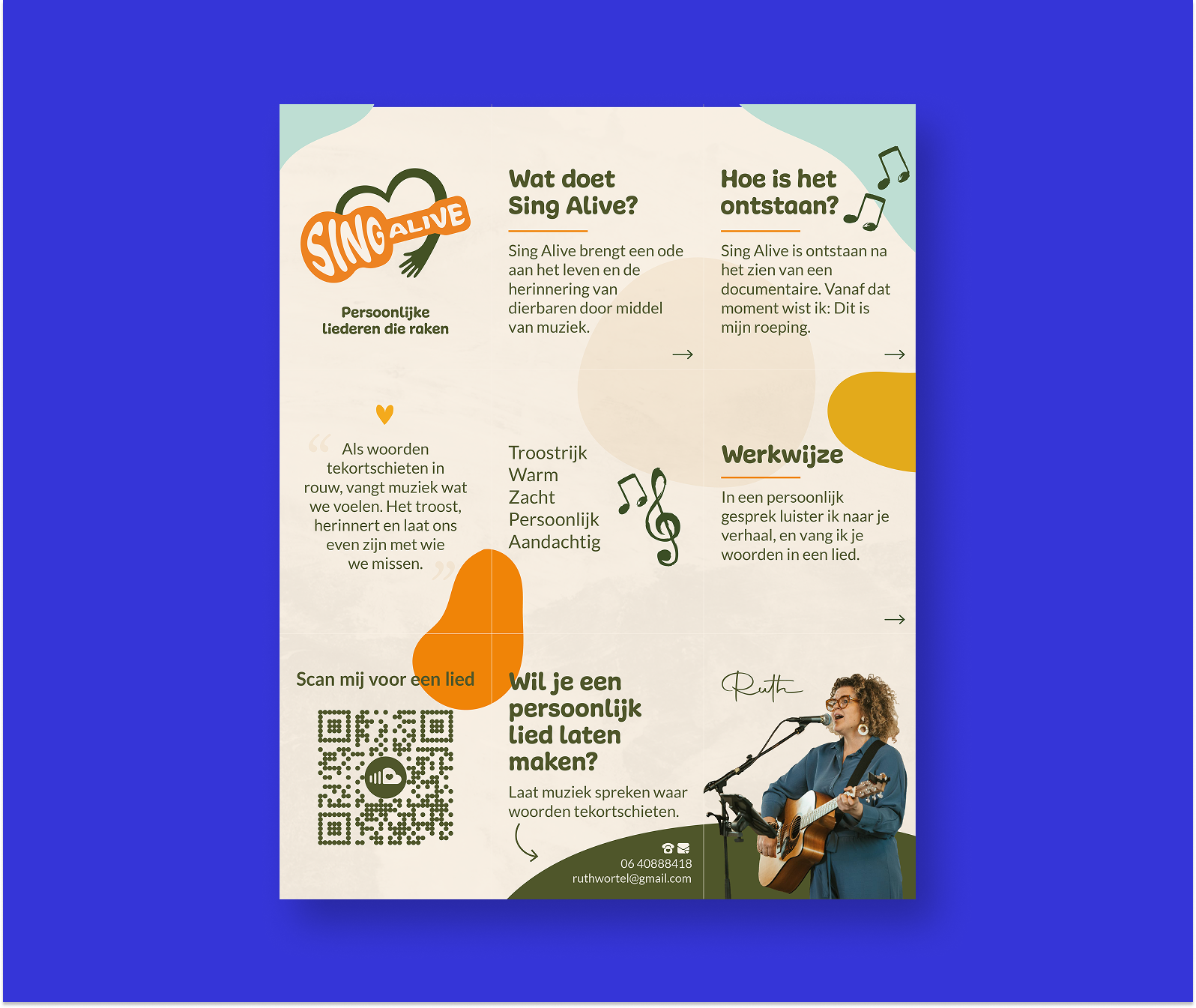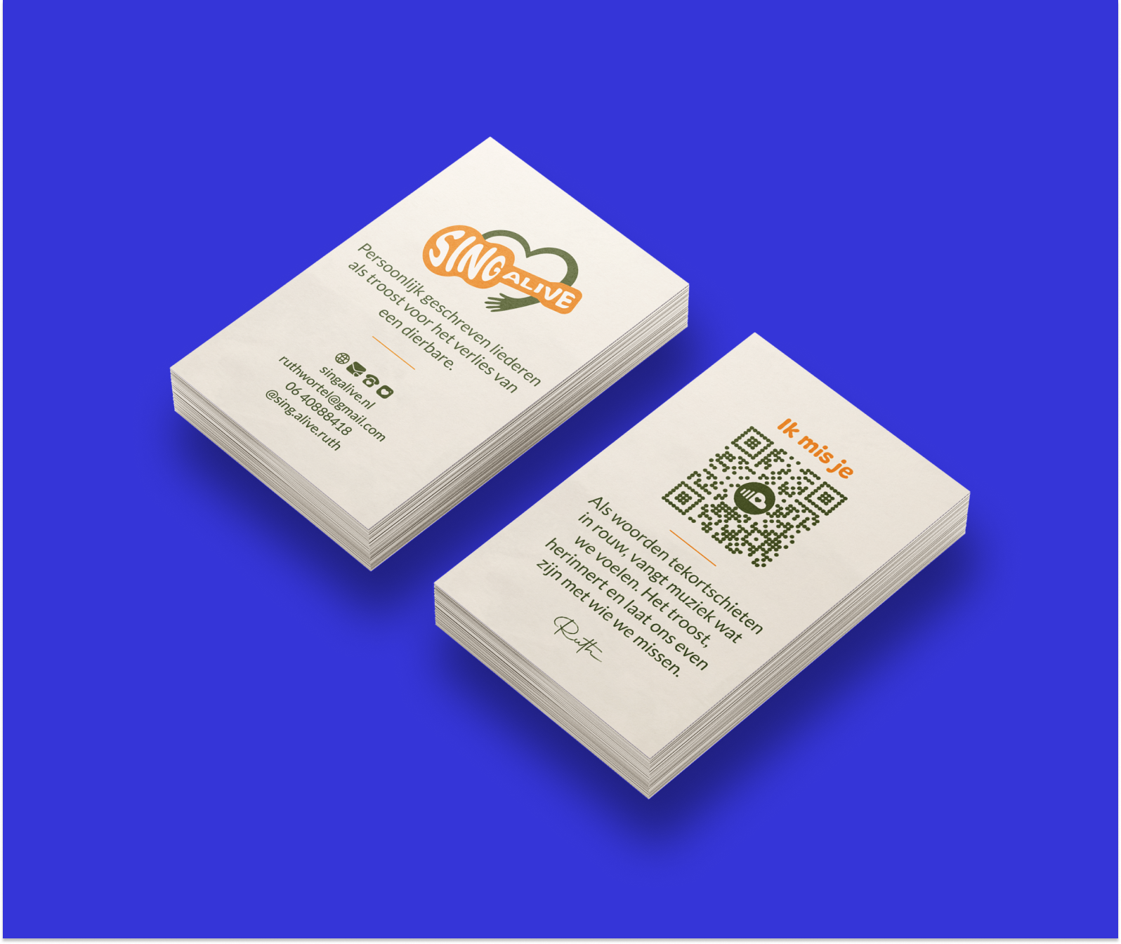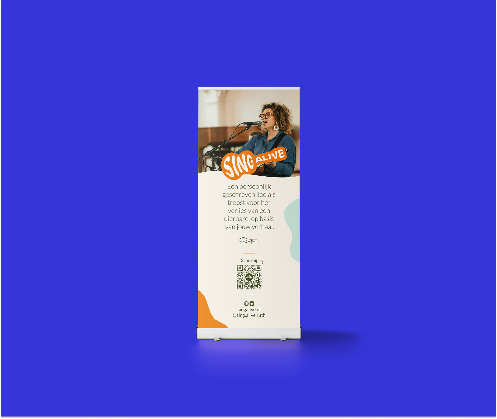Een huisstijl passend bij de warme en troostrijke persoonlijkheid van Sing Alive.
