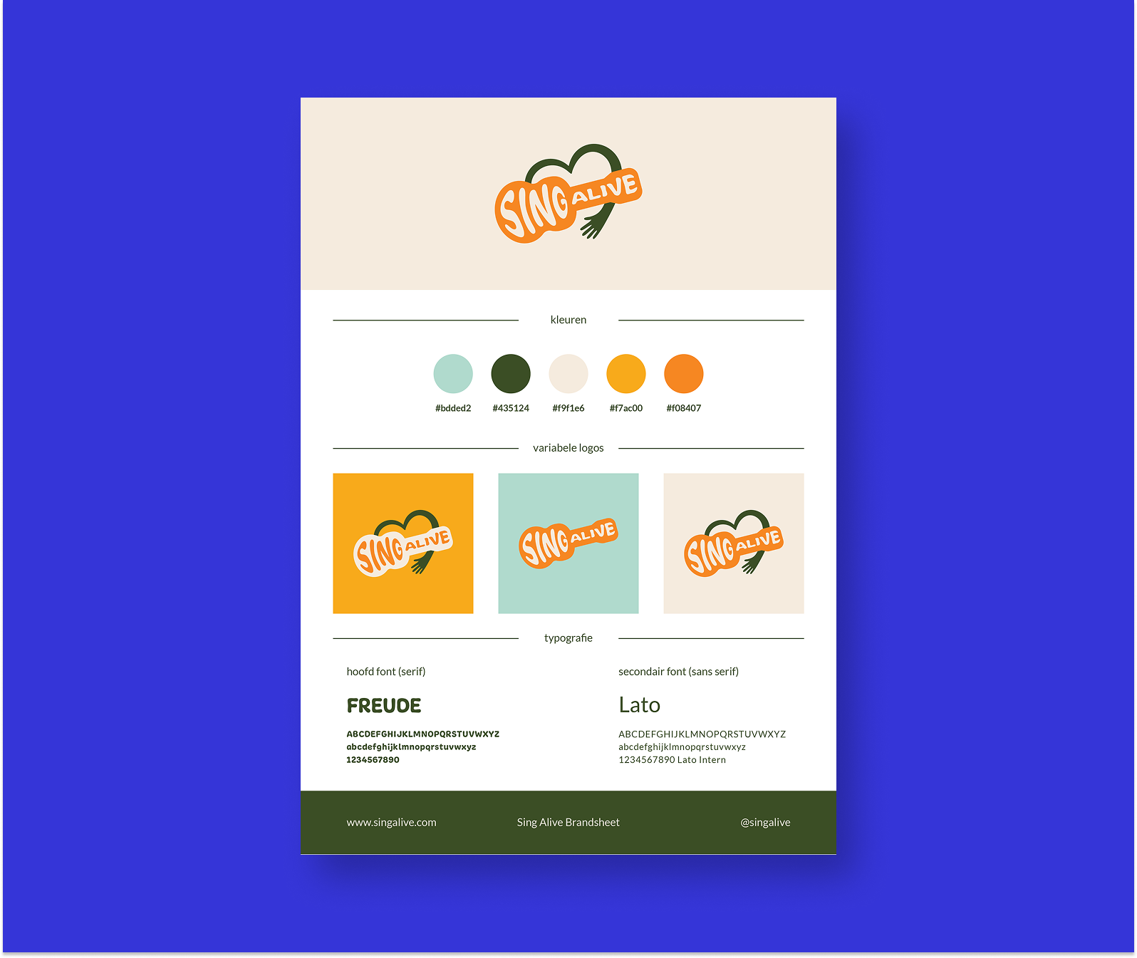 Sing Alive was nog volledig onvindbaar. Samen met 2 anderen ben ik aan de slag gegaan om een mooie basis te leggen voor het merk, met als resultaat: